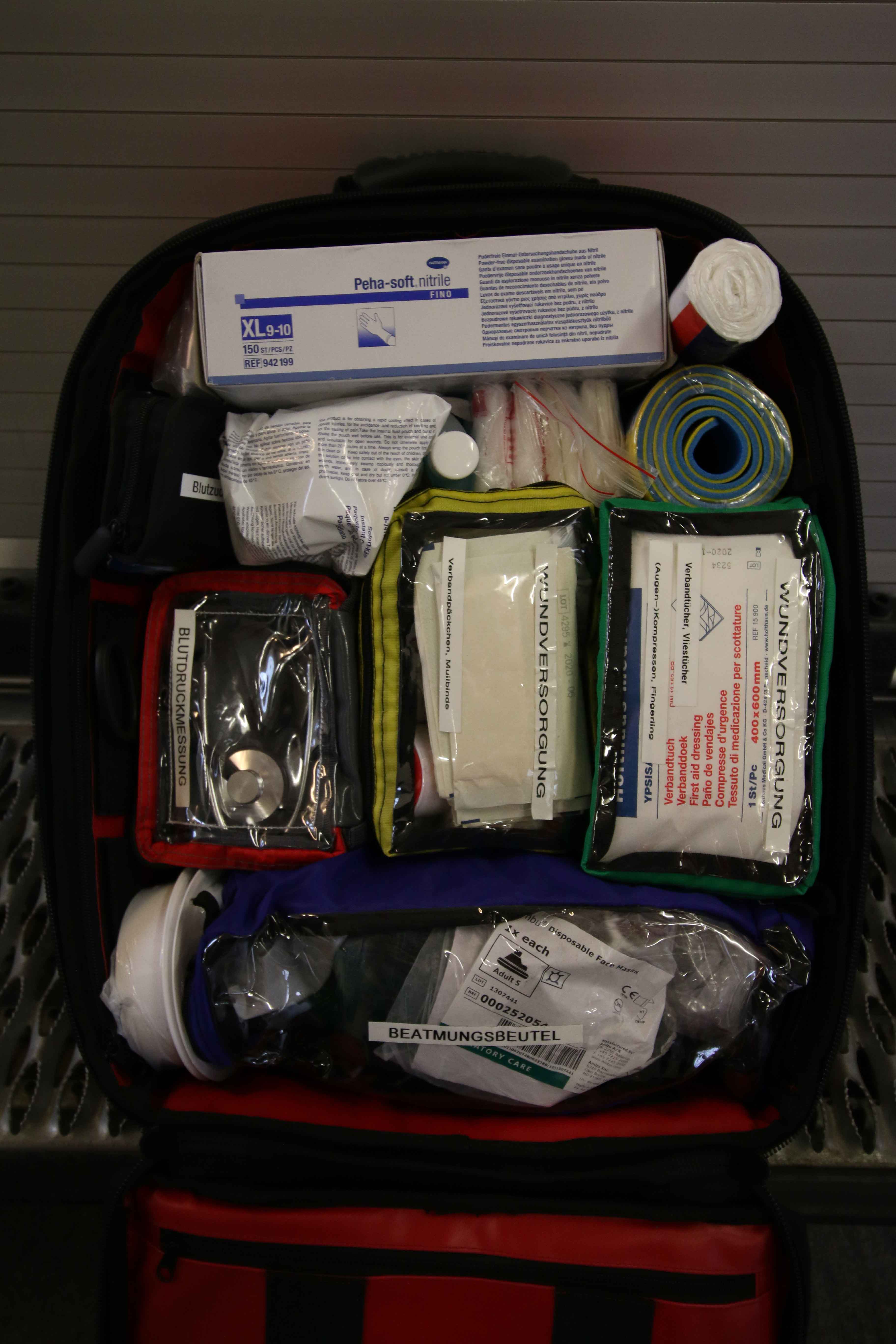 Auf jedem Fahrzeug der Feuerwehr Steinbach wird ein Feuerwehrverbandkasten nach DIN 14142 mitgeführt. Auf den vier Großfahrzeugen, sowie dem ELW 1 wurde dieser Verbandskasten jeweils durch einen Rettungsrucksack ersetzt. Dieser beinhaltet das geforderte Verbandsmaterial nach DIN 14142, wurde jedoch mit diversen medizinischen Komponenten erweitert. So lässt sich eine erweiterte Diagnostik betreiben, wie zum Beispiel das Messen des Blutdruckes und des Blutzuckers. Ebenfalls wird ein Beatmungsbeutel mitgeführt und Schienenmaterial zur Immobilisierung von verletzten Extremitäten vorgehalten.
