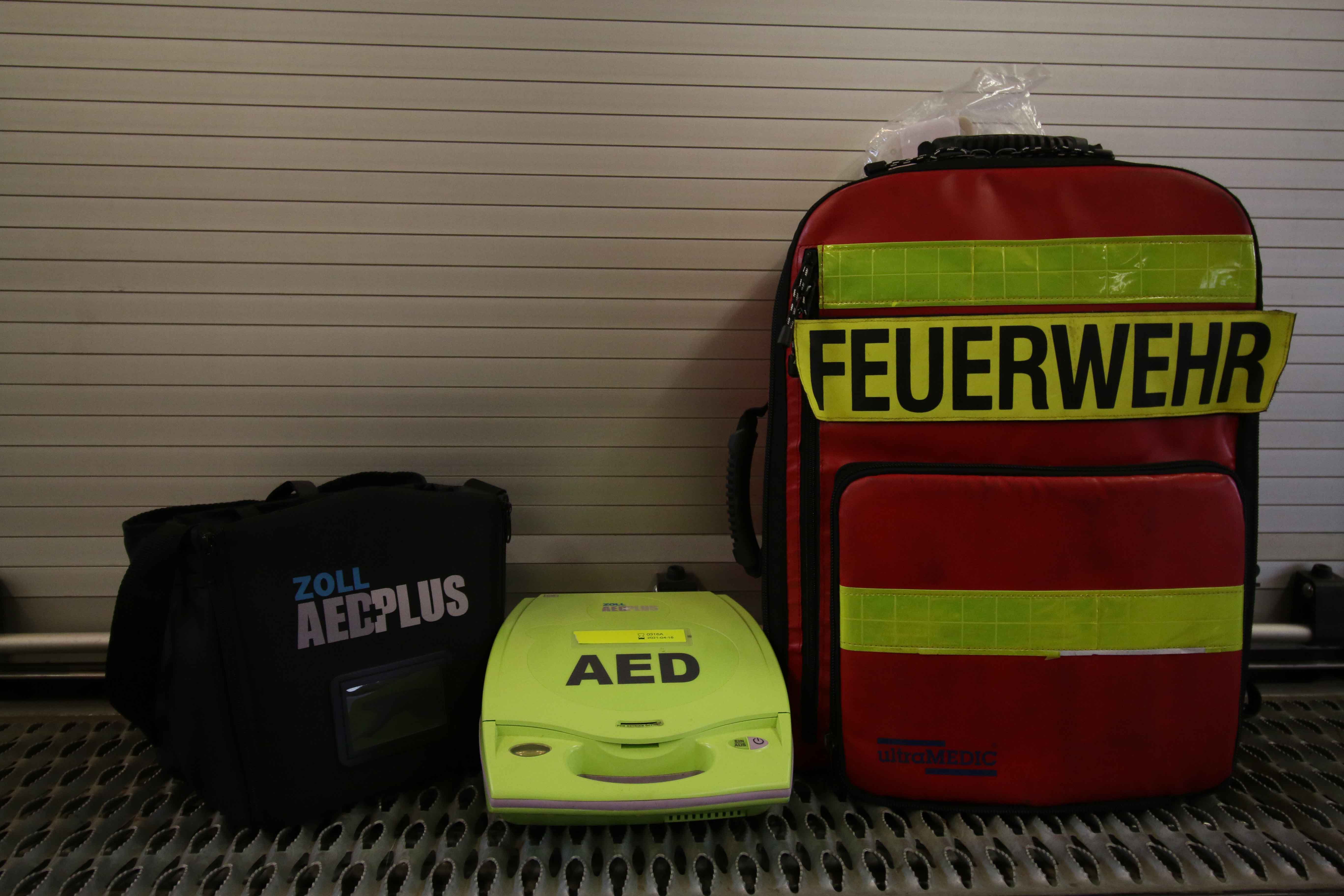 Der AED der Feuerwehr Steinbach ist auf dem LF 20 verlastet. Die Abkürzung steht für "Automatisierter Externer Defibrillator". Dieses medizinische Gerät kommt bei der Behandlung von defibrillierbaren Herzrhythmusstörungen, durch Abgabe von Stromstößen, zum Einsatz. Durch die Kompaktheit und einfache Bedienung ist es primär für Laienhelfer bzw. Erst-Helfer gedacht. Ein AED kommt primär bei einer Reanimation zum Einsatz, wobei er den Helfer unterstützt und durch laute und deutliche Anweisungen an alle wichtigen Maßnahmen erinnert. Der AED wurde in Absprache mit dem Rettungsdienst des Hochtaunuskreises angeschafft, um die Kompatibilität der Gerätschaften von Feuerwehr und Rettungsdienst sicherzustellen.