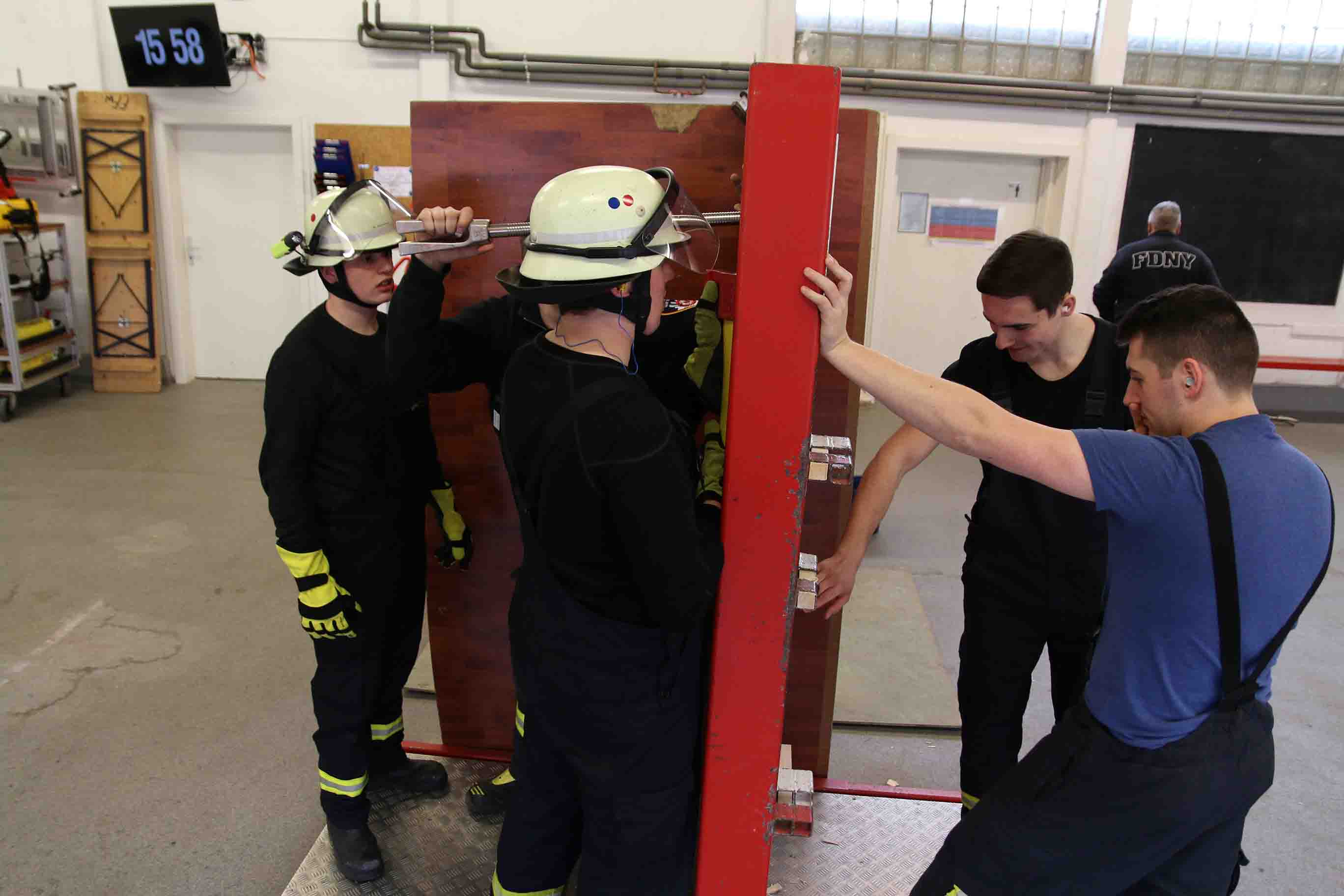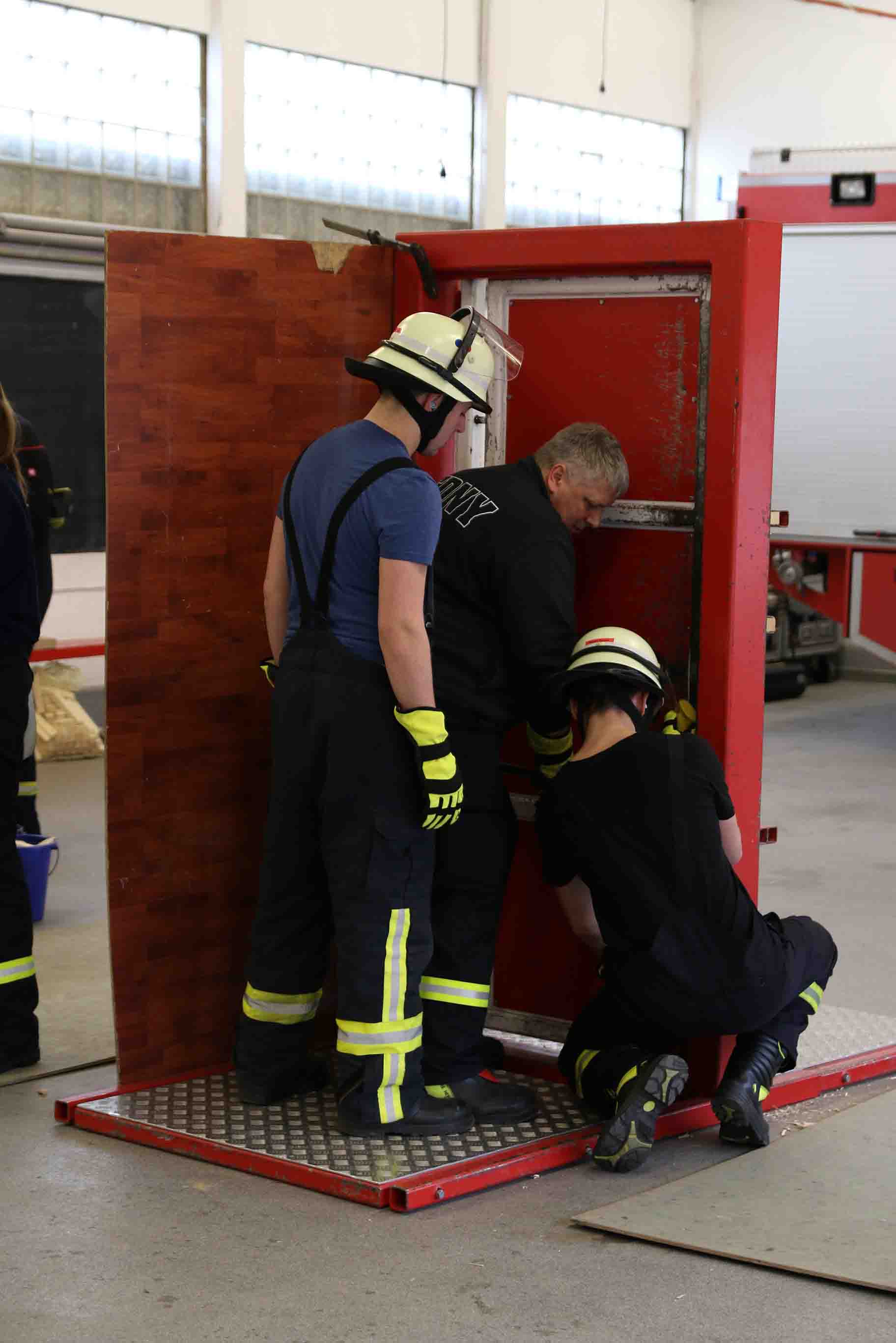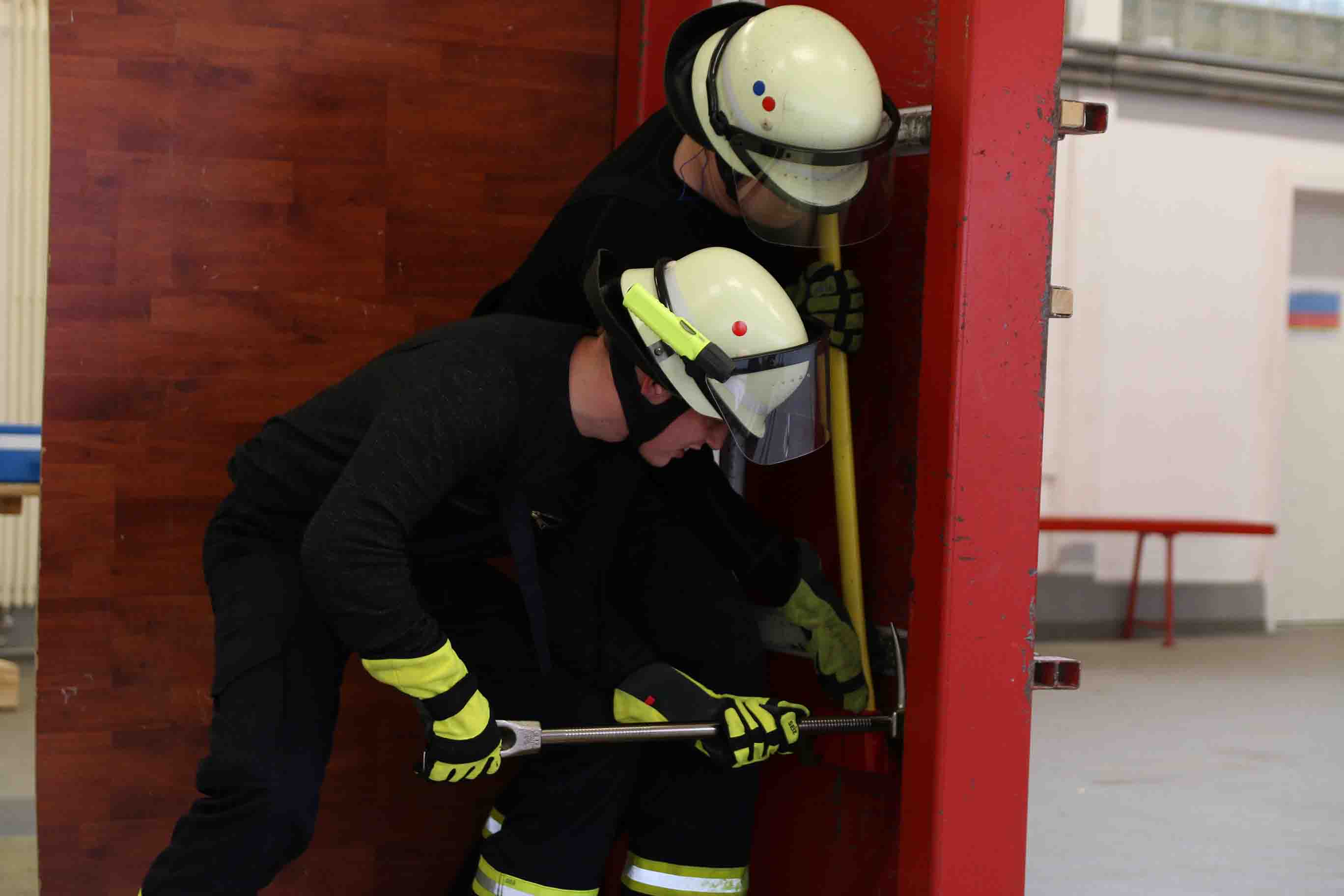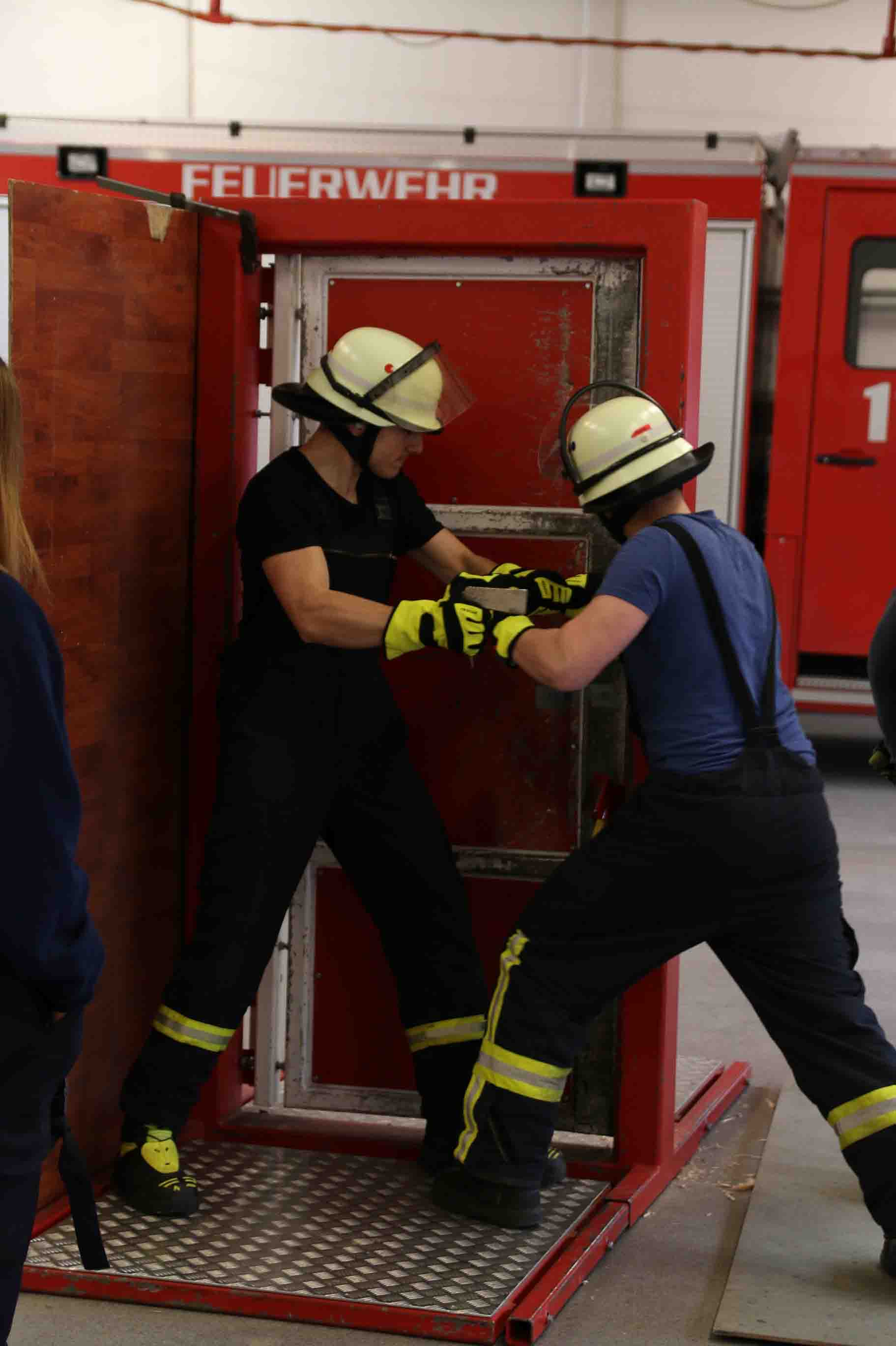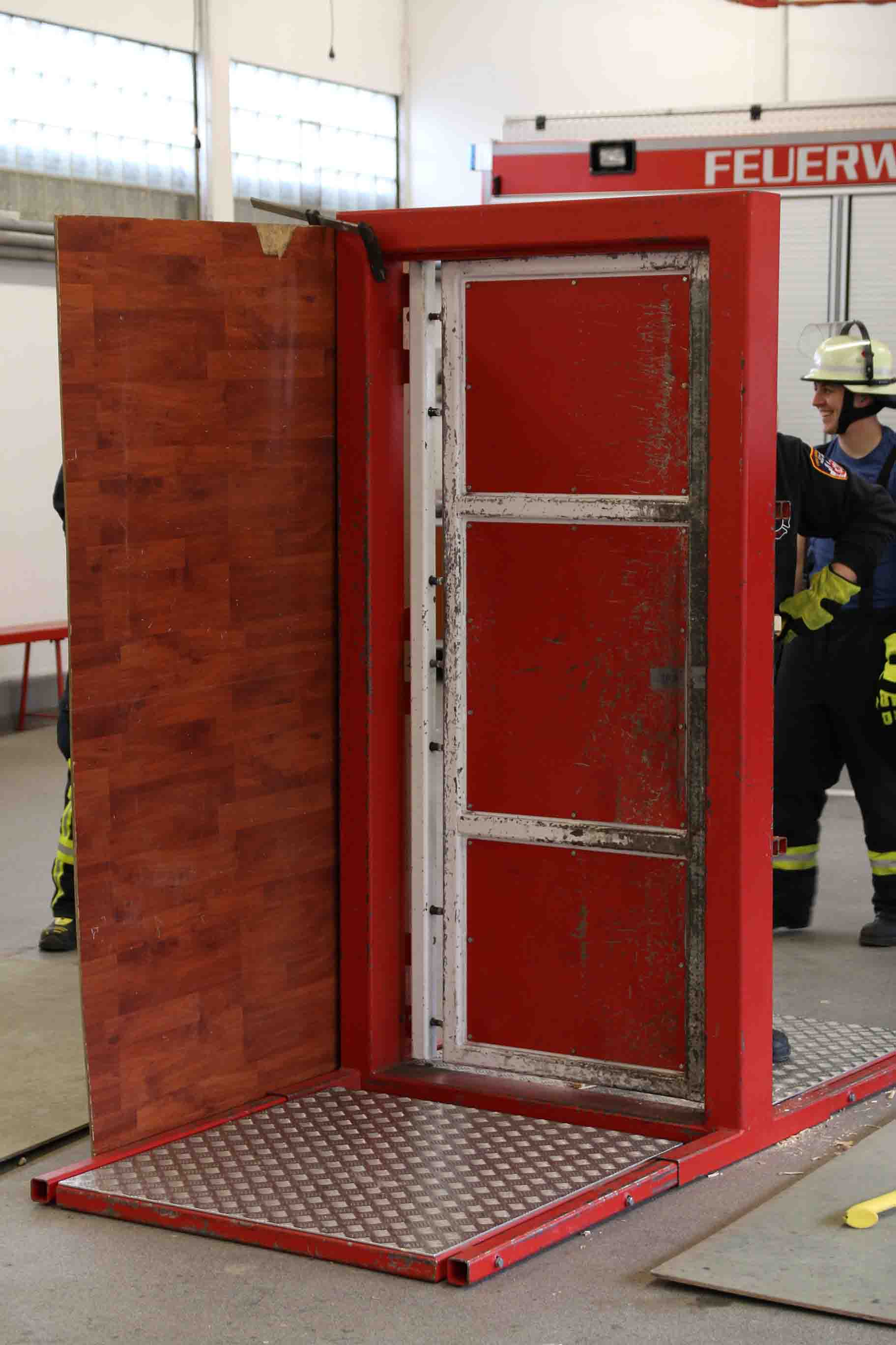 Den Widerstand der Tür konnte man mittels Holzstücken in fünf Schwierigkeitsstufen unterteilen, aber selbst Türen der Stufe fünf stellten die Steinbacher Wehrleute nur bedingt vor Probleme, sodass am Ende jede Tür geöffnet werden konnte.