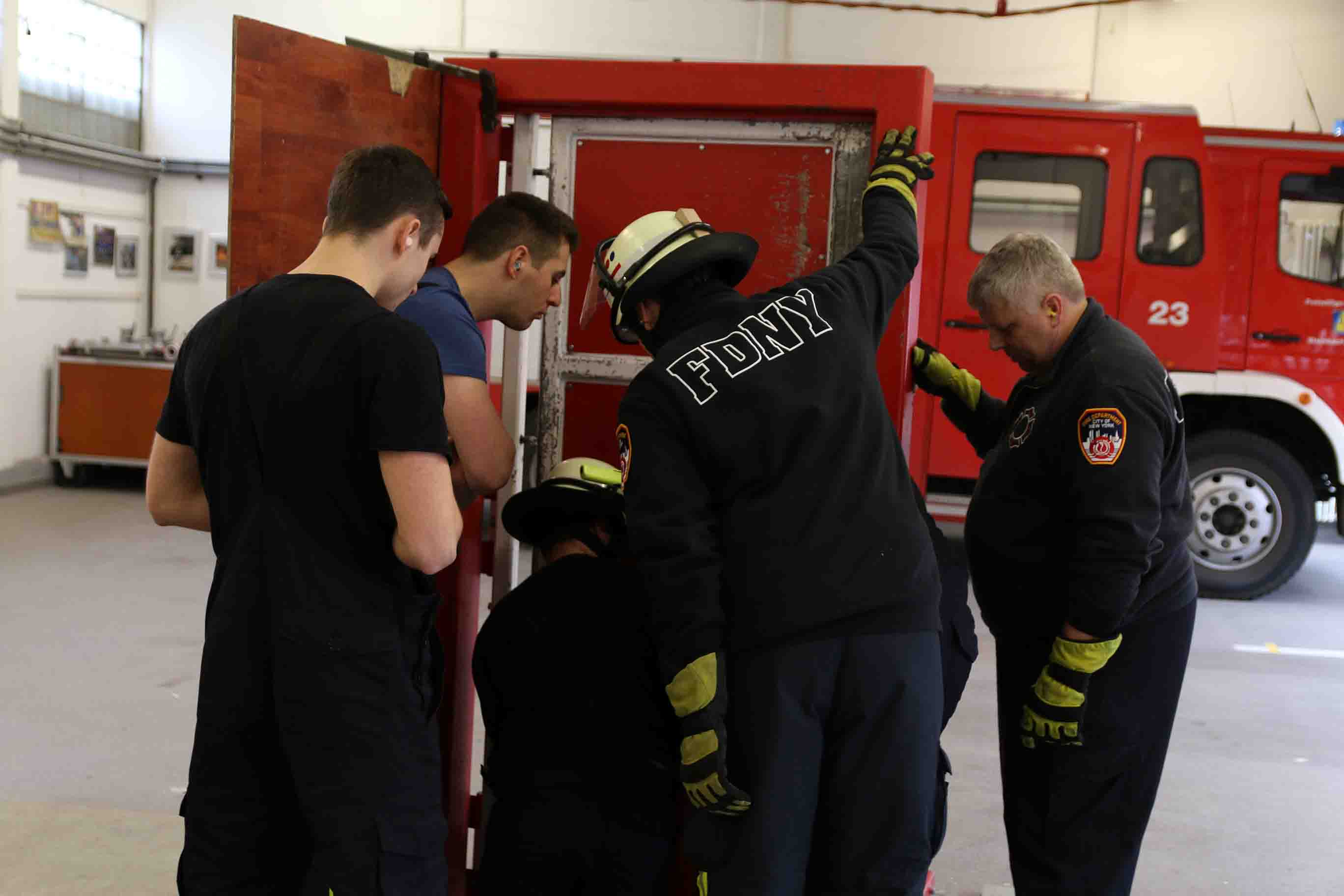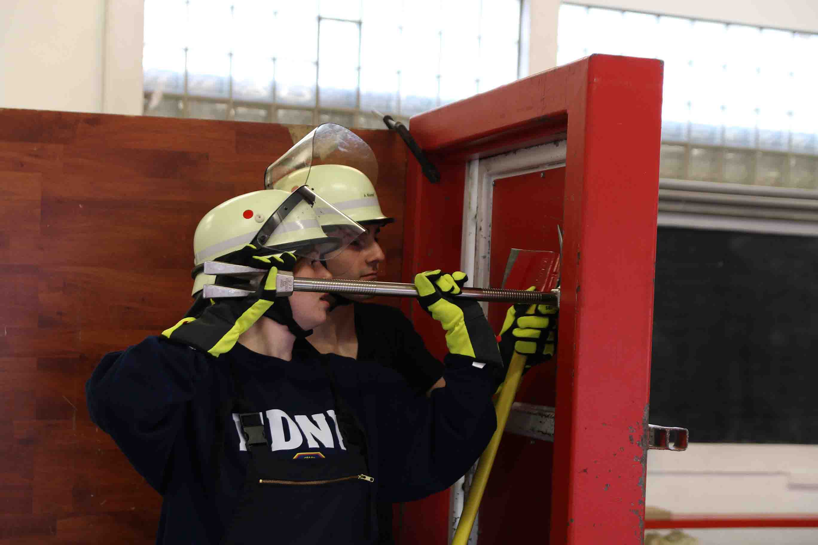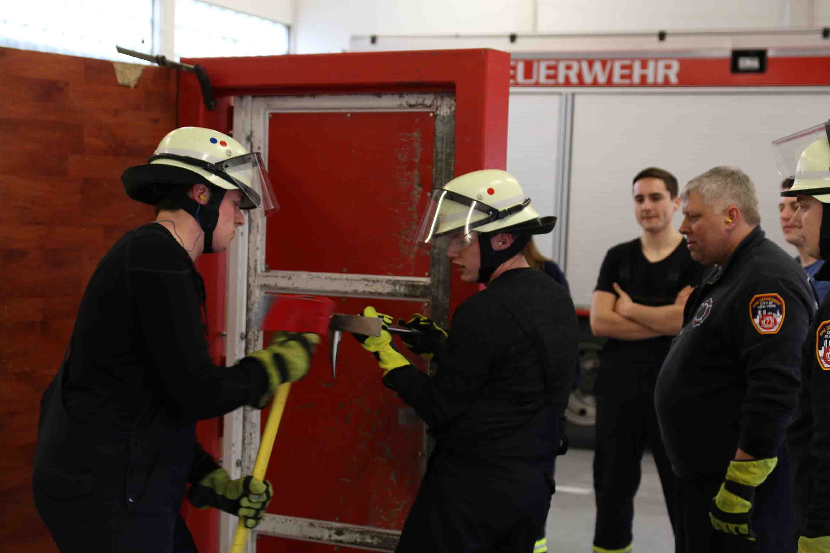 Von zwei Ausbildern wurde zunächst die richtige Taktik und das Handling erklärt, um die Tür möglichst schnell und zielsicher zu öffnen. Im Anschluss arbeitete sich dann ein Trupp nach dem anderen durch die Tür.