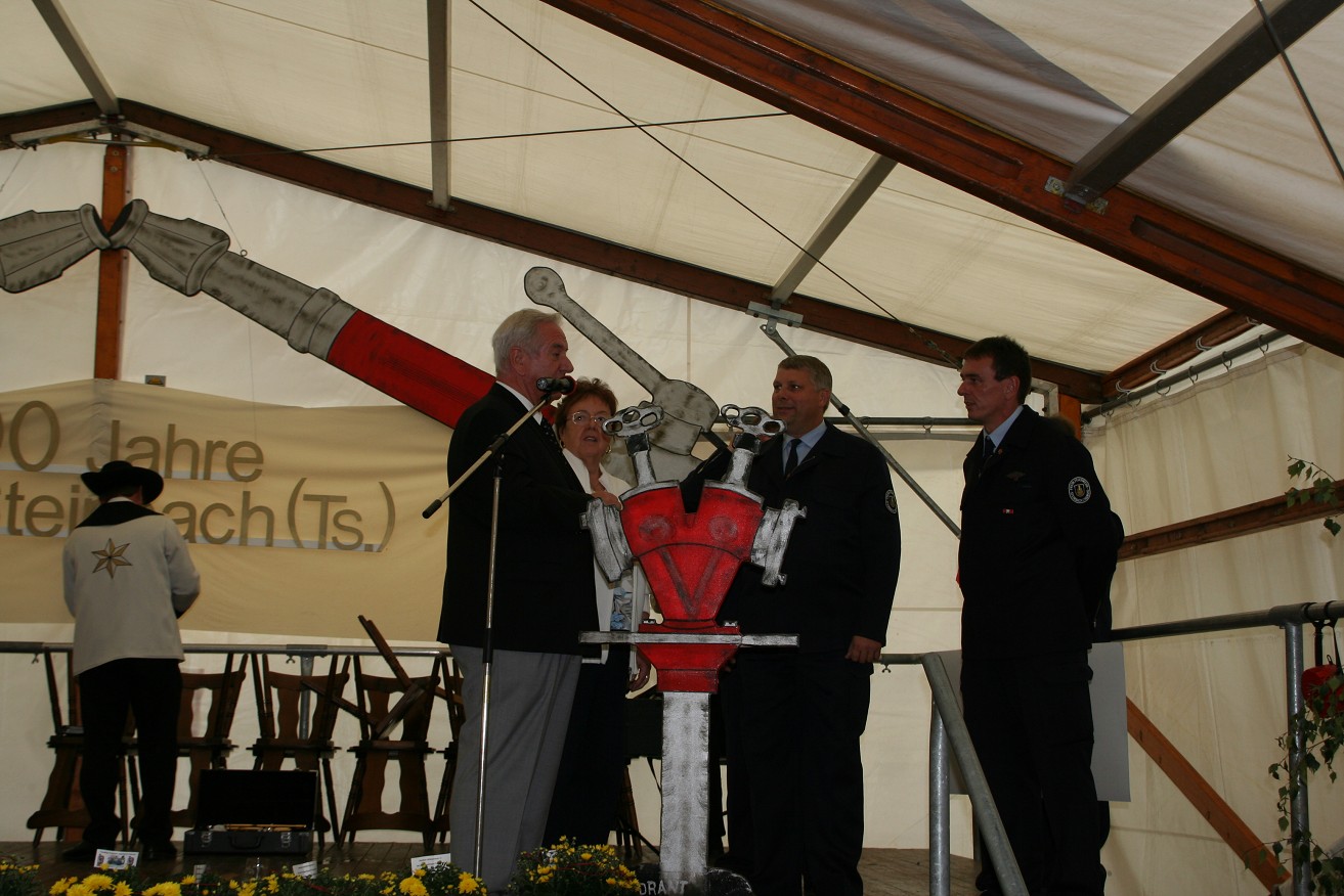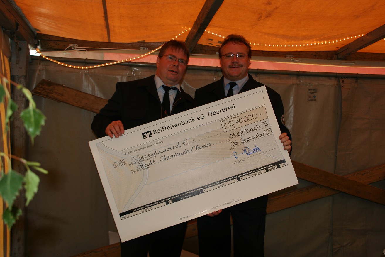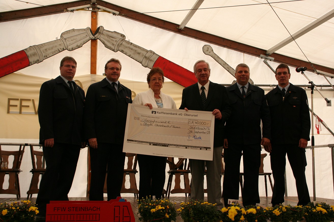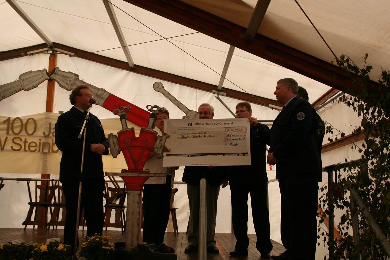 Im Rahmen der 100-Jahrfeier am 06.September 2009 konnte der Förderverein durch die Mitgliedsbeiträge und Spenden in diesem Jahr eine besondere Förderung durchführen. Bezuschusst wurde ein neu angeschaftes Fahrzeug mit 40.000,-€. Der neue Gerätewagen - Logistik wurde pünktlich zur Festwoche in Dienst gestellt. Mit einem Gesamtwert von 120.000,-€ rückt dieses Fahrzeug zur Wasser- und Ölbekämpfung, sowie zur erweiterten technischen Hilfeleistung aus.