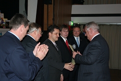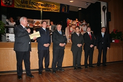 Jahresauswahl:Die diesjährige Vereinsfeier des Fördervereins der Freiwilligen Feuerwehr Steinbach (Taunus) e.V. wurde am 04.11.06 um 20 Uhr im großen Saal des Bürgerhauses vom Vereinsvorsitzenden Ralf Kiwitzki eröffnet. Dieses Jahr standen zwei ganz besondere Ehrungen auf dem Programmablauf. Kassierer Sven Dreger und 2. Vorsitzender Heinz Müller wurden für 25 jährige Mitgliedschaft geehrt.Gleichzeitig erhielten sie als ebenso lange Aktive - beide haben über 800 Einsätze absolviert - durch Dieter Messinger vom Vorstand des Kreisfeuerwehrverbandes das Silberne Ehrenabzeichen und durch Bürgermeister Peter Frosch (CDU) die entsprechende Urkunde der Hessischen Landesregierung.