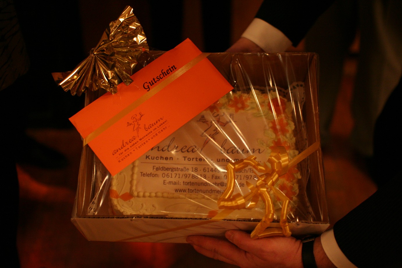 Der Hauptpreis in Form eines "200 Euro Gutscheins" vom Partyservice Andrea Baum, gewann Elke Rabes, die sich sehr darüber freute. Das Besondere daran war die Glücksfeen in Form von drei Steinbacher Bürgermeistern - Walter Herbst, Peter Frosch und Dr. Stefan Nass zogen zusammen das Los!