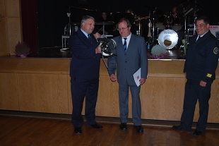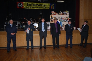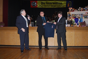 Gemeinsam feiern, das Programm genießen und den Ehrungen zuschauen. So könnte man den Ablauf der bisherigen Vereinsfeiern beschreiben. In diesem Jahr war aber etwas anders oder besser gesagt besonders. Unser Kamerad Thomas Wolf wurde für 40 Jahre aktiven Feuerwehrdienst geehrt. Als Stadtbrandinspektor Dirk Hagen ihm seinen Einsatzhelm überreichte, erhoben sich die 200 Gäste im Saal und klatschten Beifall. Thomas Wolf war sichtlich gerührt, zumal er sich aus beruflichen Gründen aus dem aktiven Dienst zurückziehen muss. Vom Kreisbrandinspektor Carsten Lauer erhielt er das goldene Brandschutz - Ehrenzeichen. Diese besondere Ehrung erhielten auch Josef Elekes und Robert Gissel für ihr 40-jähriges Engagement bei der Feuerwehr.