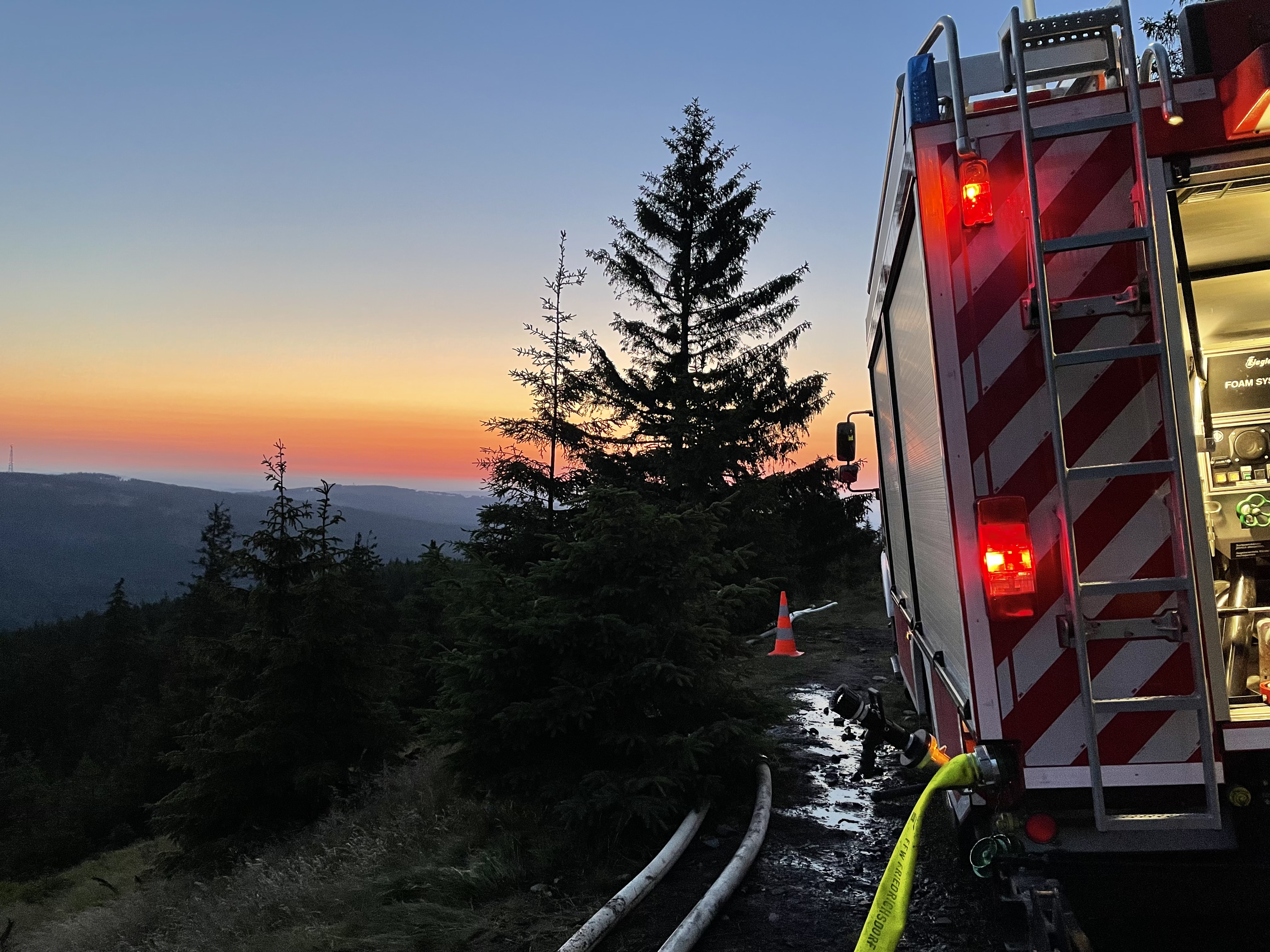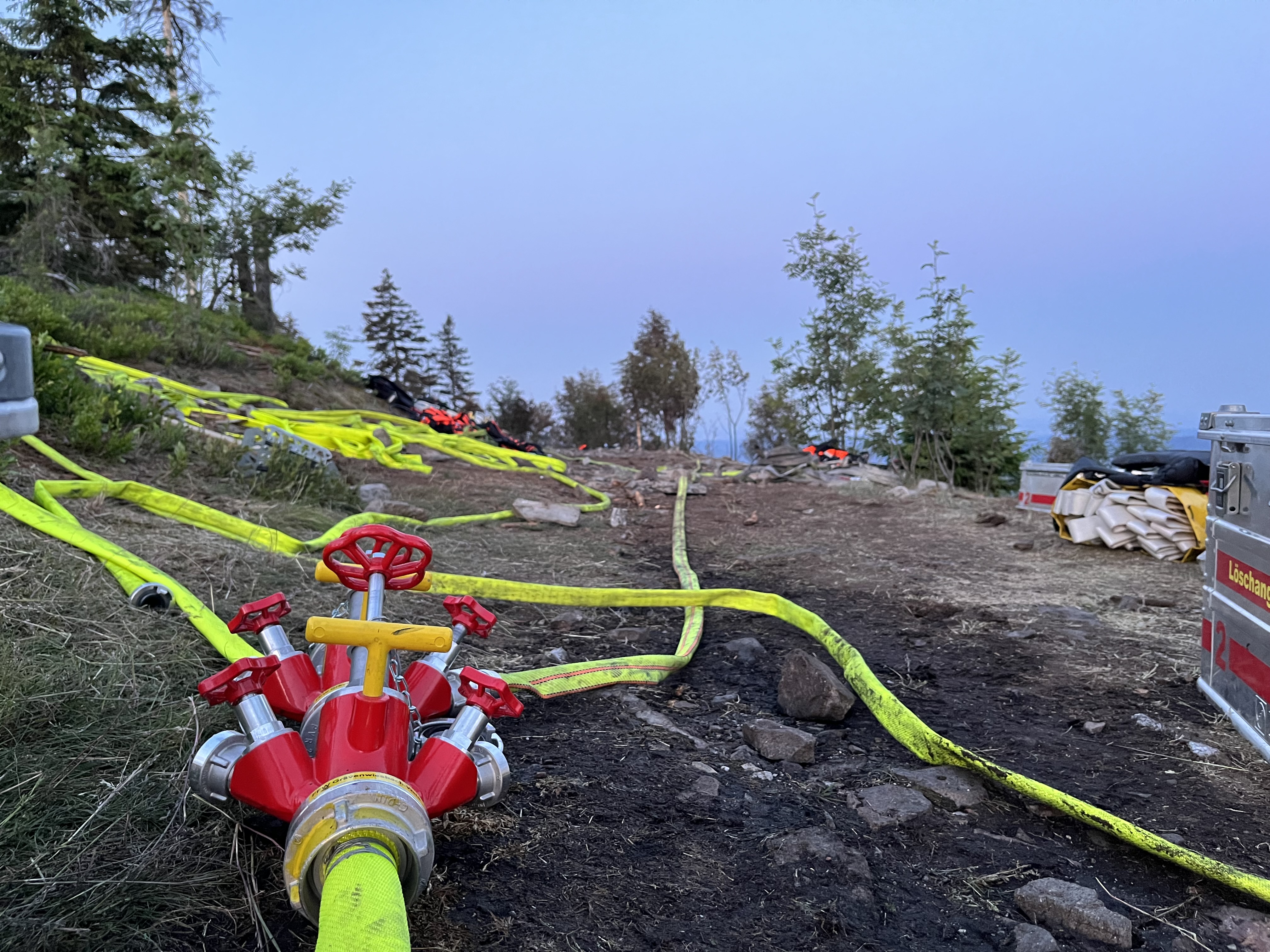 Nach Ankunft der Steinbacher Einsatzkräfte im Bereitstellungsraum an der Applauskurve ging es unmittelbar weiter zur Einsatzstelle am Altkönig. Der primäre Einsatzauftrag war die Wasserförderung zur Einsatzstelle sowie die Brandwache und das Auffinden von weiteren Glutnestern, um ein erneutes Entfachen des Brandes zu verhindern. Hierfür wurde das Wasser mittels einer langen Wegstrecke von einem Königsteiner Fahrzeug über eine zwischengeschaltete Verstärkerpumpe und unser LF 10 bis hin zu einem Friedrichsdorfer Fahrzeug gefördert, welches dann das Wasser auf die Endverbraucher verteilt hat. Somit wurde eine Strecke von mehreren Hundert Metern überwunden.